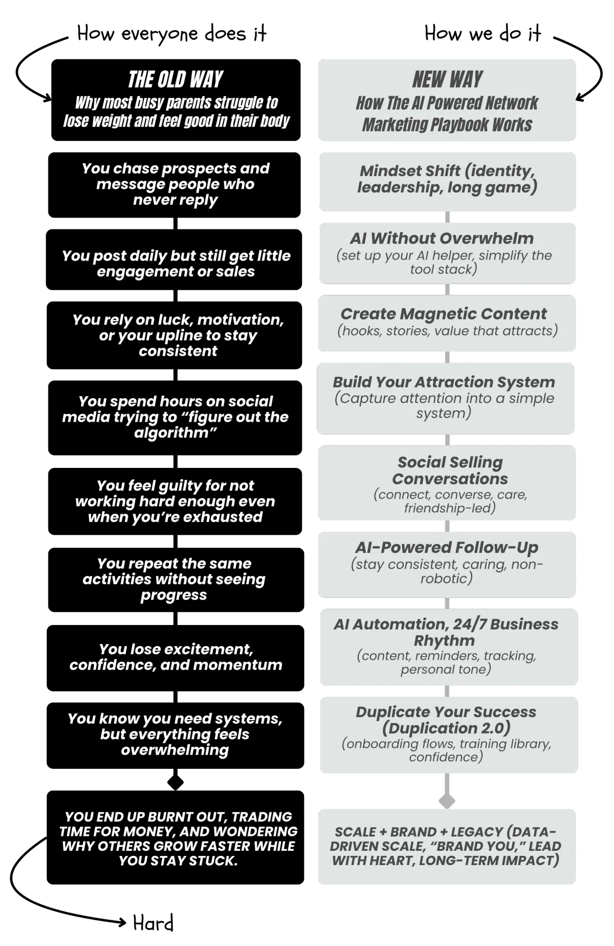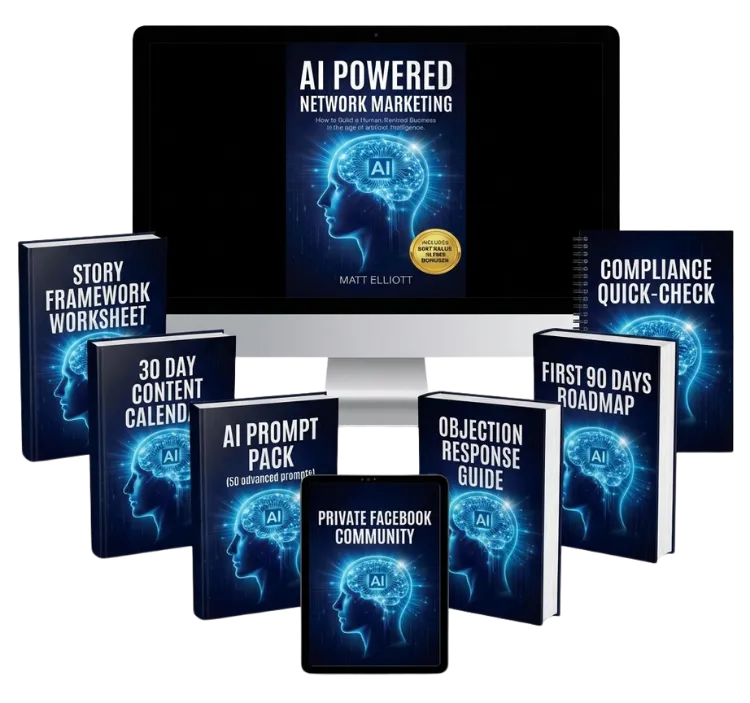 A: Most AI books are written by tech people for general business. This book is written by a 20-year network marketing veteran specifically for network marketers. It addresses your unique challenges: team duplication, compliance, authentic relationship-building, and creating systems that scale without you.